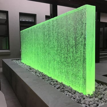 Water Bubble Walls, Water Glass Fountains, Pillar Bubble Walls, Sandstone Fountains, and Bubblewall Counters — each designed to create a calming, luxurious ambiance.